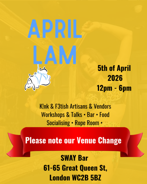 LAM or London Alternative Market is a Kink+ event for adults that started in 2006 and provides a unique blend of shopping, socializing and education on a monthly basis. One of the unique features of LAM is that with clear policies and procedures you can see what the event is about before you decide to attend and the 1pm newbie orientation is designed to help people quickly find their feet at the event.