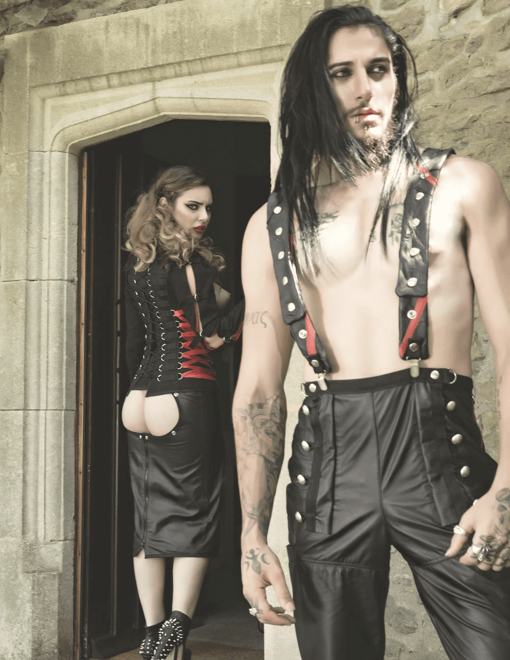 Expect innovative steel boned corsets for men, women and those in between, alternative leather fetish bondage trousers, pinstripe skirts, kinky print ties and waistcoats, intersectional T-shirts, and BDSM inspired accessories (such as the Modular Tool Wrap) – all proudly designed and made by Jed in their South London studio.